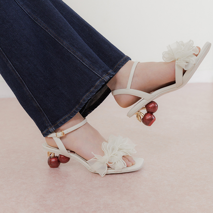 These strappy sandals feature a playful, iconic cherry heel that will catch your eye