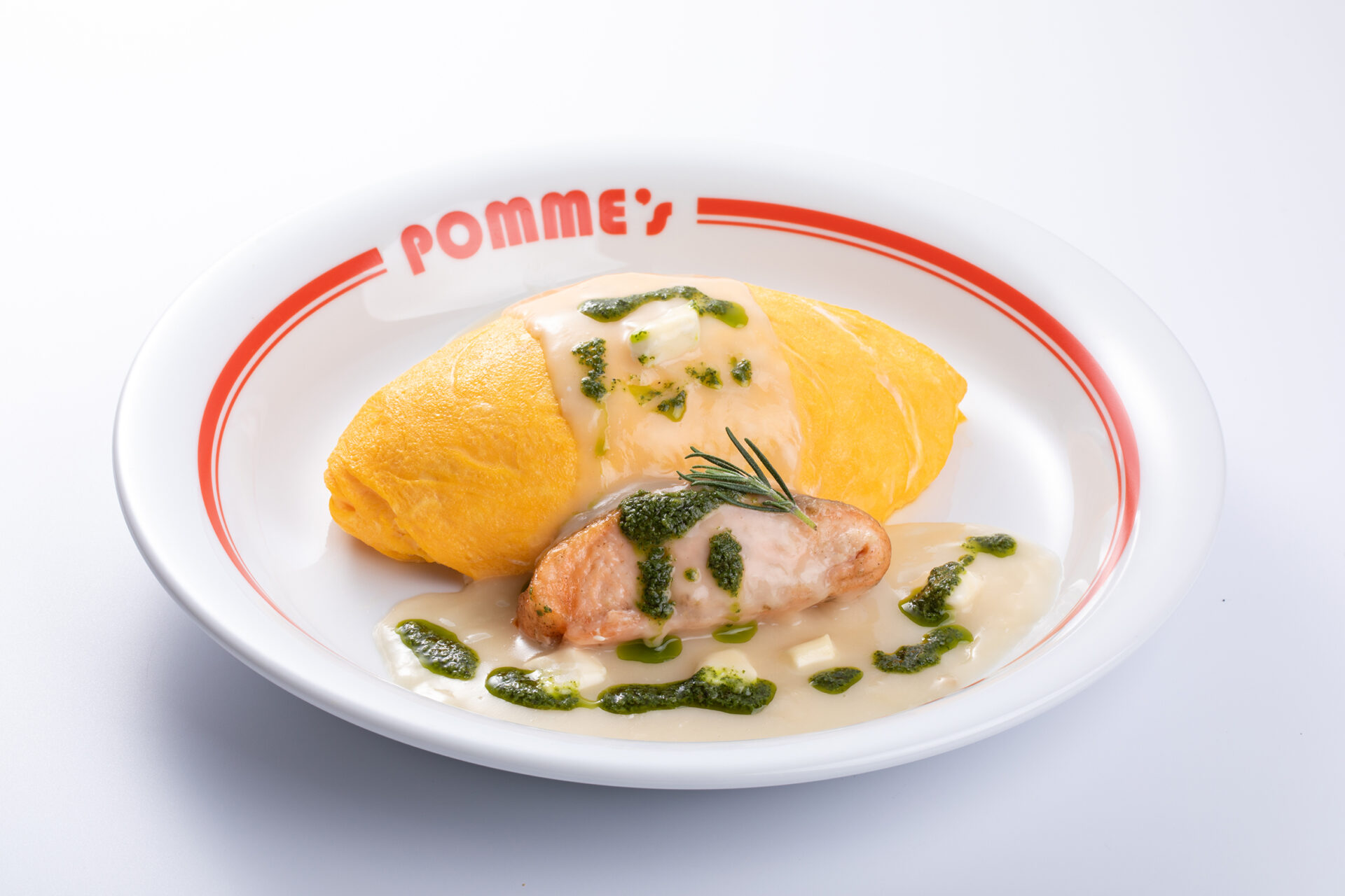 オムライスにバジルペーストでアクセントを加えた