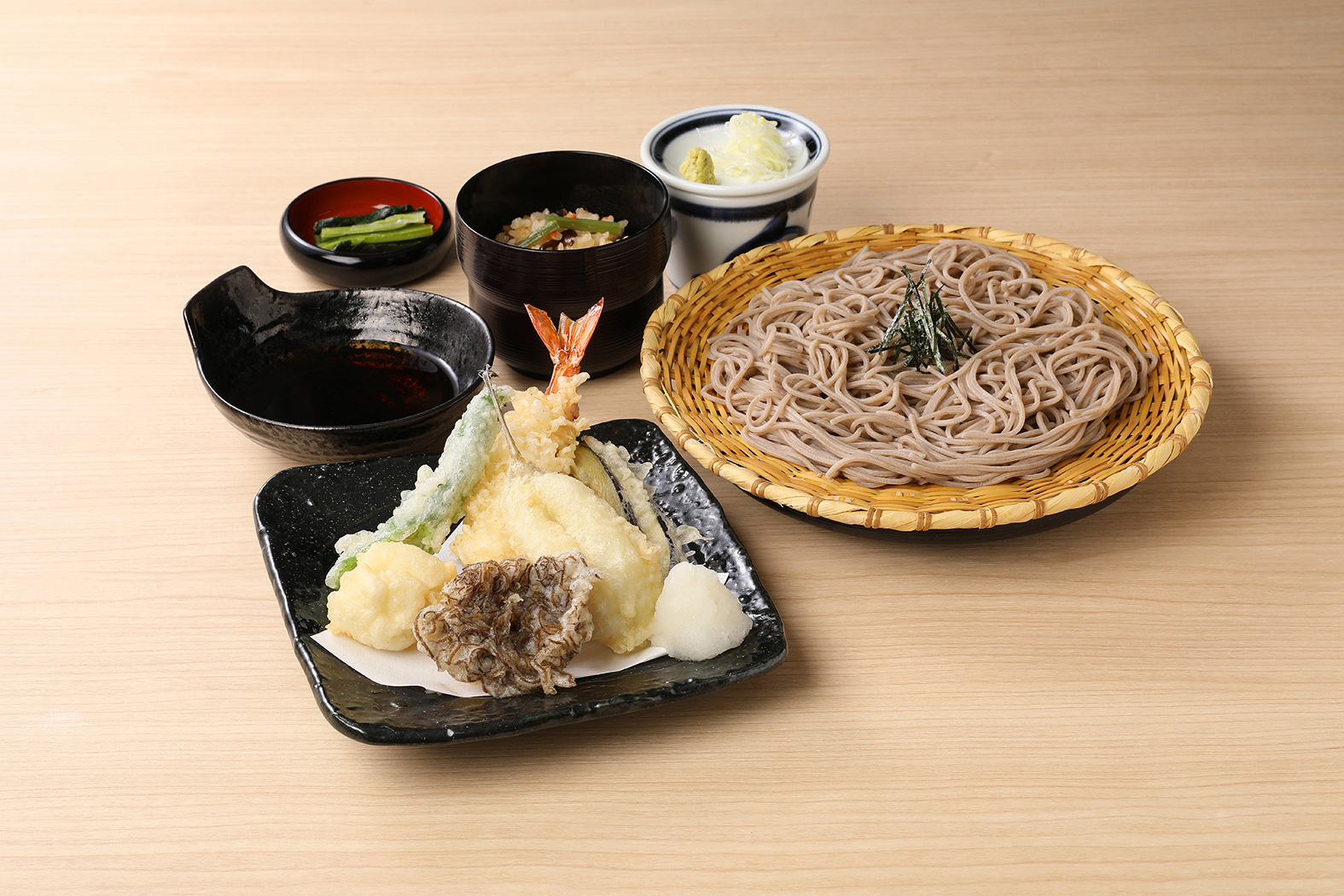季節の味覚天ざるそば定食(かやくご飯付き)