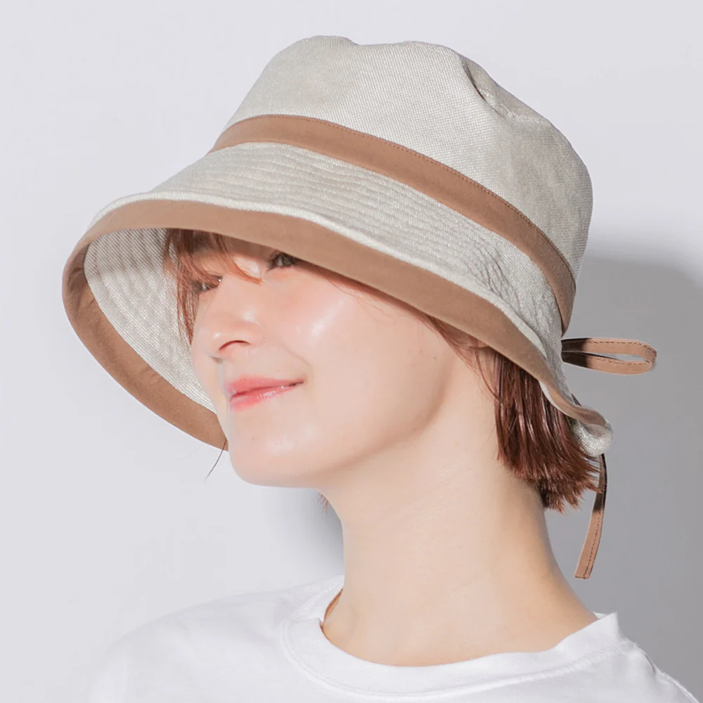 大きめのバックリボンでかわいらしいアクセントを加えたUVハット。