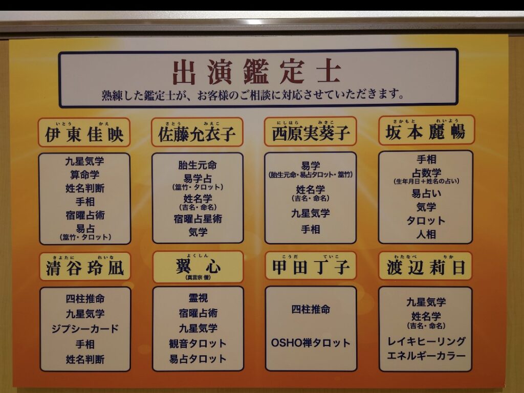 初めてのお客様は直接、占いコーナーまでお越しいただけましたらその日の鑑定士が、対応させていただきます