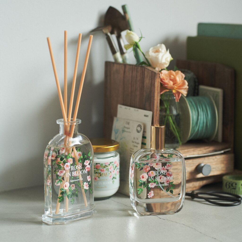 ヨーロッパの庭園を思わせる、上質な香りのコレクション『GARDEN』シリーズが登場!両面に繊細な植物画を施したデザインは、どこに置いてもインテリアとして美しく映えます。リビングや玄関にそっと置くだけで、空間にやさしく彩りを添えながら、時間とともに変化する奥行のある香りが広がります。