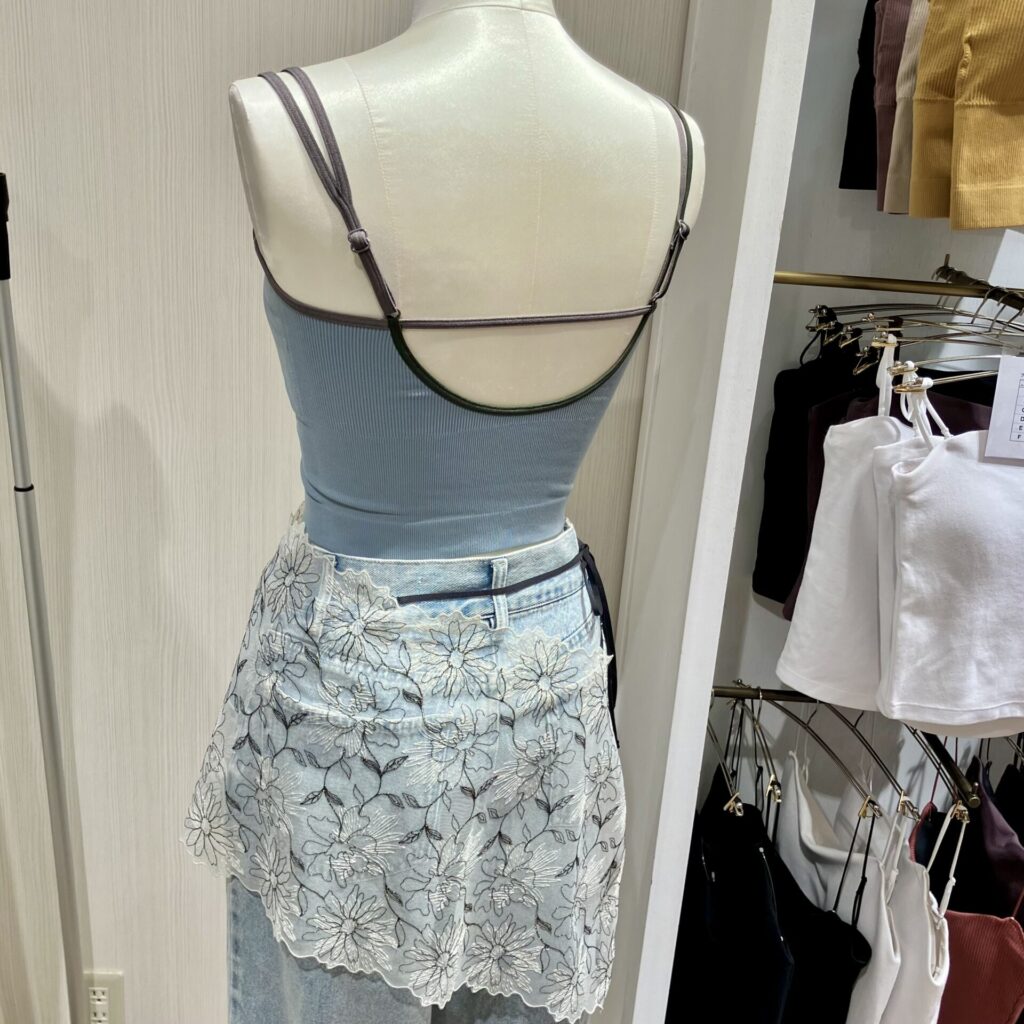 ✔︎伸縮性のあるアウターライクなリブ調の生地なのでシースルートップスのインナーとしてや、背中見せアウターとのコーディネイトにもオススメ!