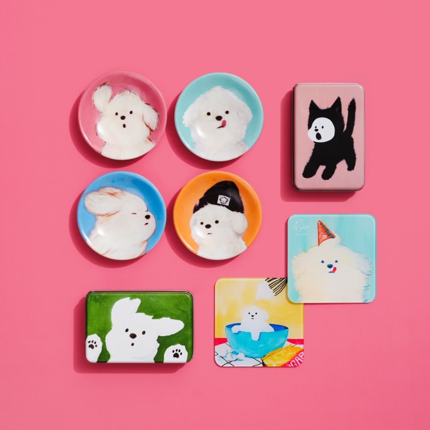YEYEが描くムンゲの表情は癖になるものばかり。紅茶缶や箱入りのミニプレートセットは、大切な人へのギフトにもおすすめです。