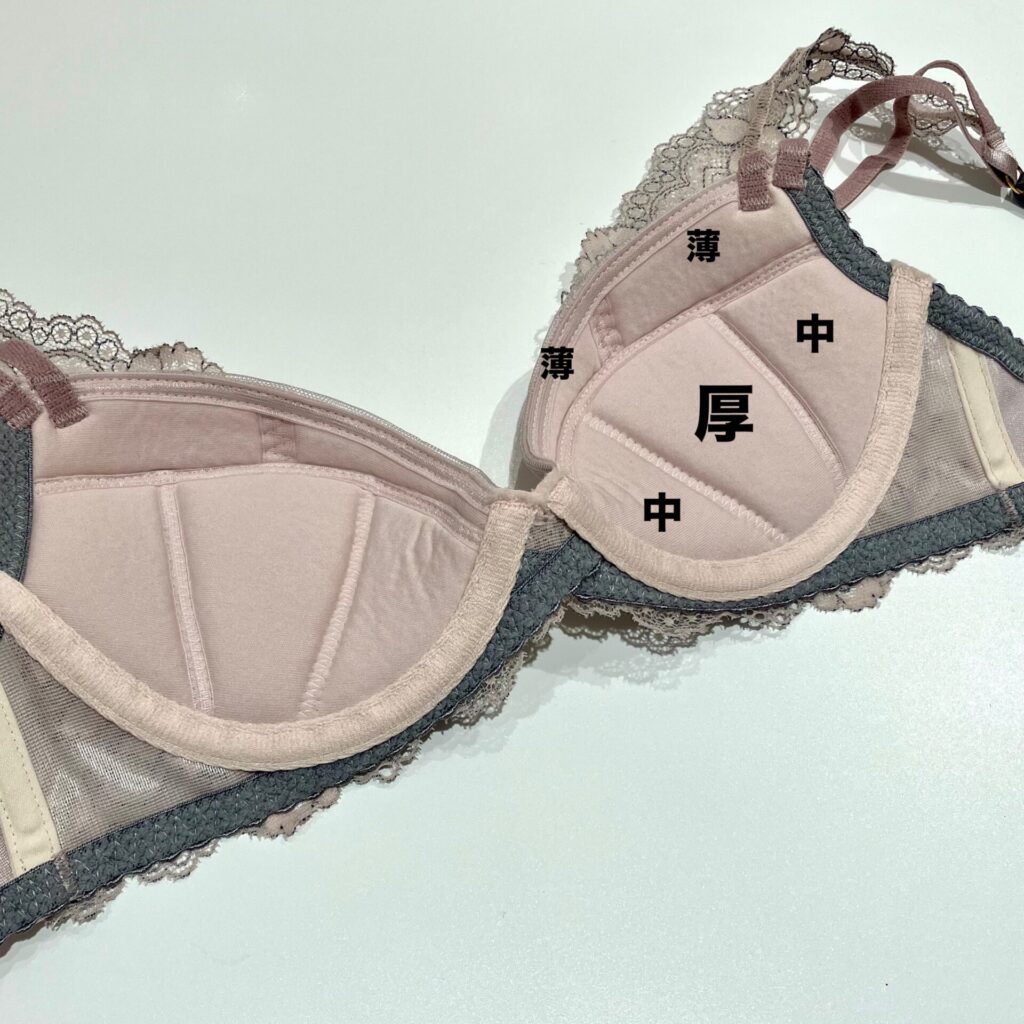 ・内蔵パッドは、厚みの異なるパワークッションで、バストを押し上げ、デコルテをボリュームアップ。